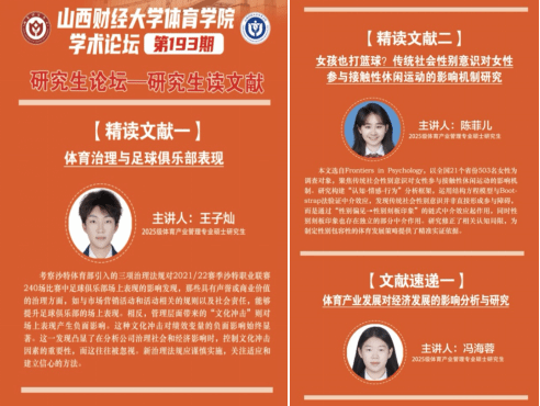 在文献精讲环节,两位2025级研究生带来兼具国际视野与本土关怀的深度分享。王子灿同学聚焦《体育治理与足球俱乐部表现》,考察了沙特体育部引入的三项治理法规对2021/22赛季沙特职业联赛240场比赛中足球俱乐部场上表现的影响。研究发现,具有声誉或商业价值的治理规则,如与市场营销活动和社会责任相关的规范,能够提升俱乐部场上表现;而管理层层面的“文化冲击”则对绩效产生显著负面影响。这一发现凸显了分析公司治理社会和经济影响时,控制文化冲击因素的重要性,为新治理法规的审慎实施提供了理论参考。