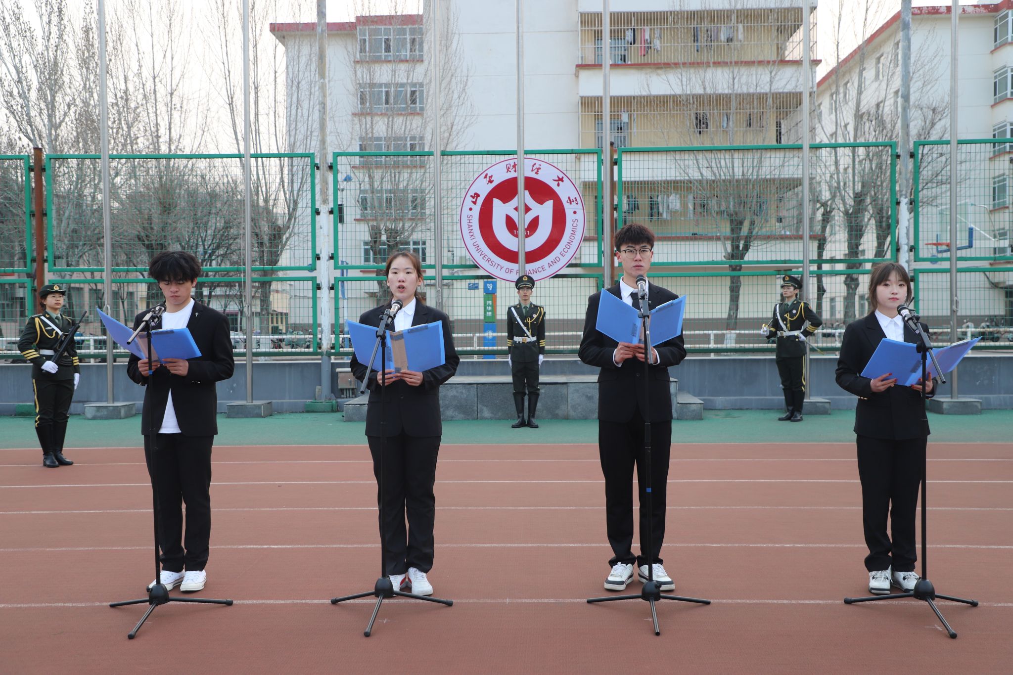 学生代表姚翟乐、覃乐妍、胡梦哲、朱梦晗以《学风筑梦,青春启航》为题进行国旗下的演讲。他们号召全院同学摒弃懈怠、勤学笃行,做到文体兼修、知行合一,以青春之名共建优良学风、共扬体育精神。